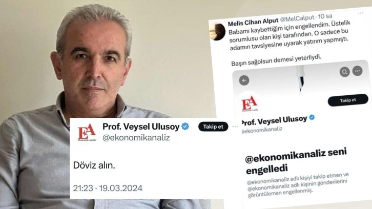 Melis Cihan Alput, Veysel Ulusoy'u dinleyerek yatırımını dövize yapan babasının üzüntüsünden beyin kanaması geçirdiğini duyurdu. Alput, 'Babam sizin çok sıkı takipçinizdi. Bundan 2 ay önce tüm altınlarını satıp dolar aldı. Üstüne kredi çekti biraz daha ekledi. Söylediğiniz gibi olmadı ve kötü günler başladı. Geçtiğimiz hafta beyin kanamasından kaybettik. Babamı kaybettiğim için engellendim. Üstelik sorumlusu olan kişi tarafından. O sadece bu adamın tavsiyesine uyarak yatırım yapmıştı. Başın sağolsun demesi yeterliydi' sözleriyle isyan etti.