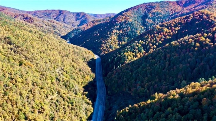 Ankara-Zonguldak kara yolu üzerinde bulunan Mengen geçişindeki ormanlar, yeşil, sarı ve kahverengi tonlarıyla sonbaharın güzelliğini yansıtıyor.