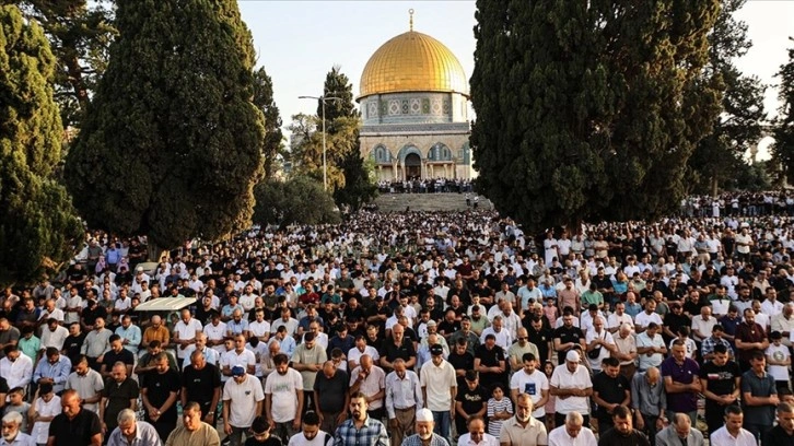 Kur'an-ı Kerim tilaveti ve teşrik tekbirleriyle bayram namazına kadar Mescid-i Aksa'da bekleyen on binlerce Müslüman, namazdan sonra okunan bayram hutbesini dinledi.