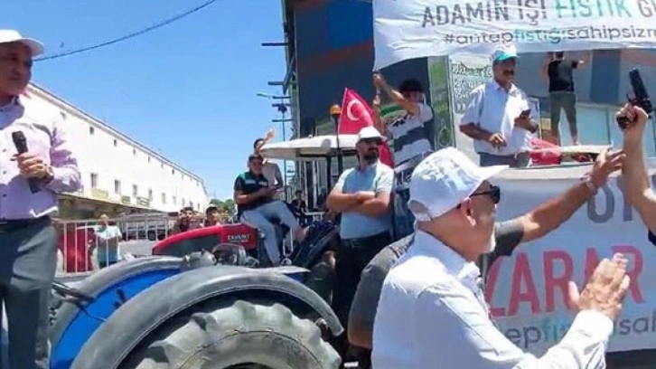 Fıstık fiyatlarına yönelik çiftçiler traktörleriyle konvoy yaptı.