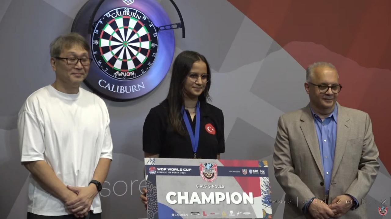 Güney Kore'nin Goyang kentinde düzenlenen Dünya Genç Kızlar Dart Şampiyonası finalinde güçlü rakibi Fillandiyalı Lida Lanko'yu 5-2 mağlup eden 15 yaşındaki Ayşegül Karagöz altın madalyaya uzandı.