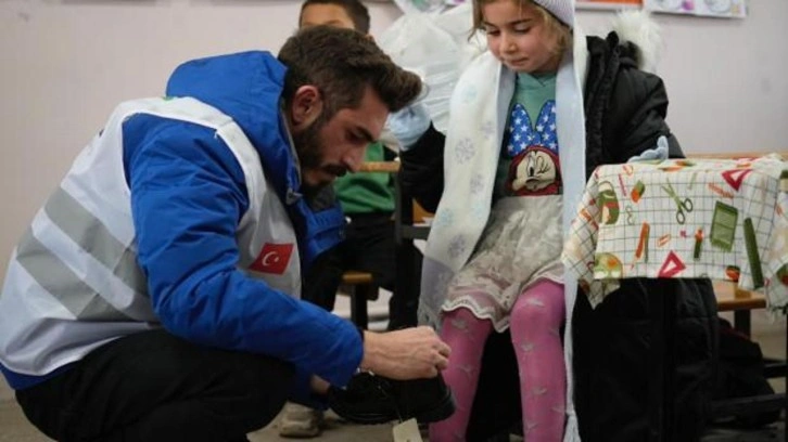 Onlarca köy okulunda yüzlerce çocuğa karda kışta ayakları sıcacık olsun, ayakkabıları su almadan okullarına gidip gelsinler diye bot verdik.