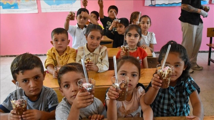 Eşinin görev yaptığı okulda düzenlenen etkinlikte çocuklara tatlı ikram eden Karaca, kırsalda yaşayan çocukları da tatlıyla buluşturmaya karar verdi.