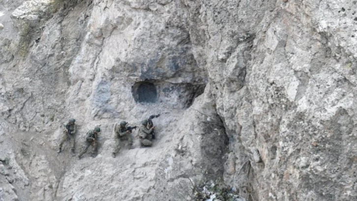 Fotoğrafta, operasyon kapsamında terör örgütüne ait mağara ve sığınaklara Mehmetçik tarafından arama tarama yapıldığı anlar yer aldı.