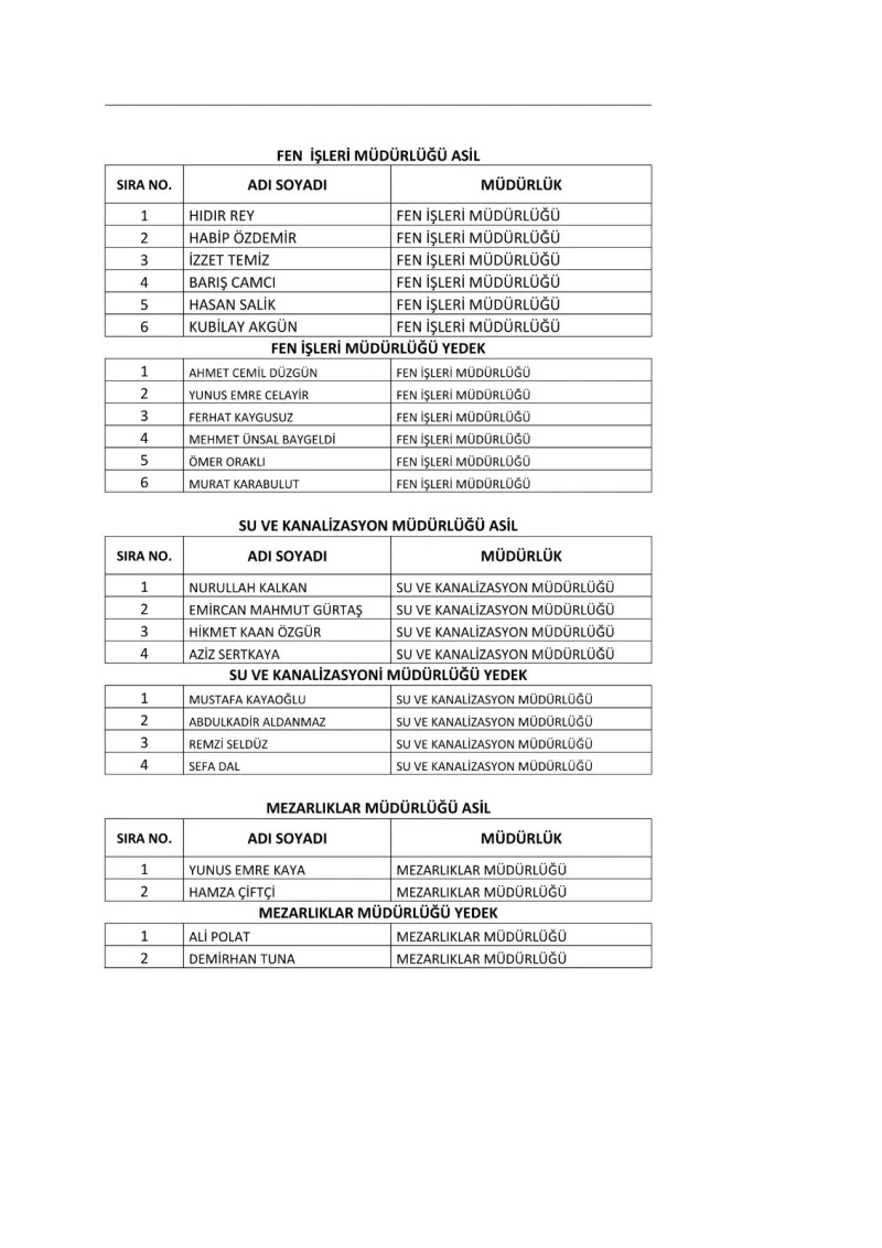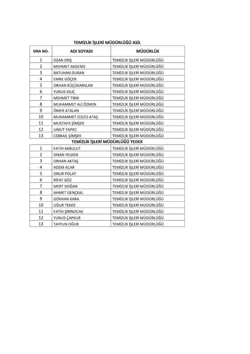 Noter Arslan tarafından gerçekleştirilen kura çekimiyle Temizlik İşleri Müdürlüğü’nde 13, Fen İşleri Müdürlüğü’nde 6, Su ve Kanalizasyon Müdürlüğü’nde 4 ve Mezarlıklar Müdürlüğü’nde 2 işçi olmak üzere istihdam edilecek olan toplam 25 erkek işçi belirlenmiş oldu. Asil adayların yanı sıra 25 kişilik yedek liste de belli oldu.