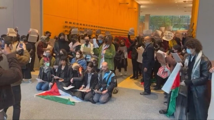 Yüzlerce Filistin destekçisi gösterici Perşembe günü New York Times ofisinin lobisinde protesto düzenledi. Protestocular New York Times'ı Gazze'deki savaşla ilgili haberlerinde İsrail'e karşı önyargılı olmakla suçladı.