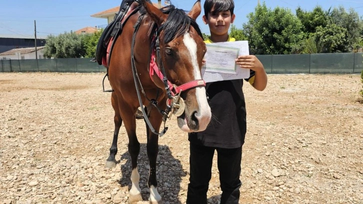 Antalya'da okulun son günü karnesini almaya at ile gelen çocuk, hem öğrencileri hem de velileri şaşkına çevirdi.