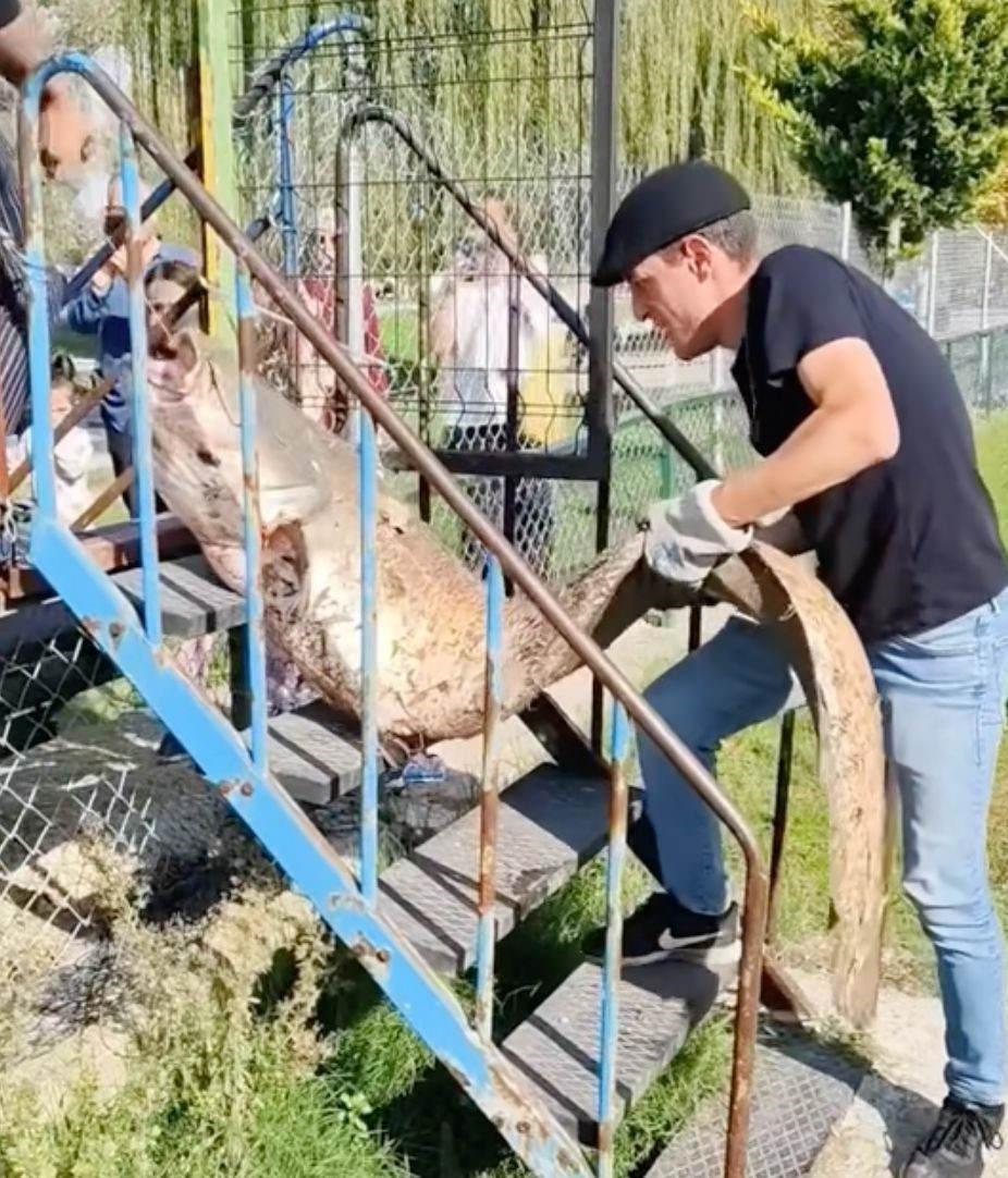 Sakarya Nehri kıyısına ailesiyle birlikte piknik yapmaya giden amatör balıkçı, nehre olta attı. Bir süre sonra oltasına büyük bir balığın takıldığını fark eden balıkçı, balığı kıyıya çıkarmak için mücadele etti.