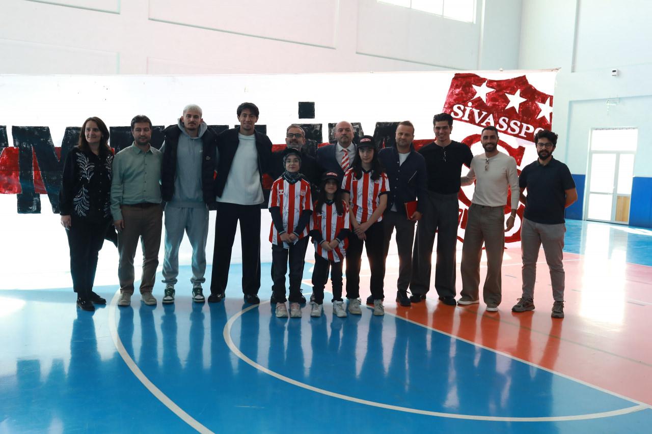 Trendyol 1. Lig ekiplerinden Özbelsan Sivassporlu futbolcular, Aşık Veysel Ortaokulu öğrencileri tarafından hazırlanan resim sergisinin açılışına katıldı.