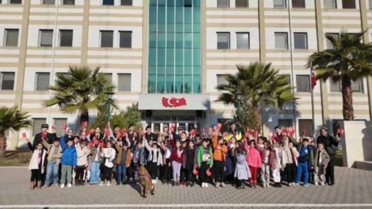 Minik ziyaretçiler, İl Jandarma Komutanlığı emrinde görevli tam donanımlı zırhlı araçları gezip, köpek timleri tarafından yapılan çeşitli gösterileri büyük ilgiyle izledi.