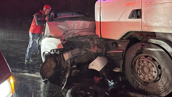 Edinilen bilgiye göre, Bigadiç ile Sındırgı ilçelerini bağlayan karayolunda, M.G. idaresindeki 35 ANE 873 plakalı TIR ile 43 ZF 124 plakalı otomobil yağışlı havada kafa kafaya çarpıştı.