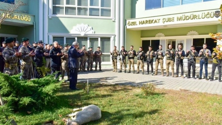 Okunan duaların ardından personeller için kurban kesildi. Emniyet Müdür Aktaş, Müftü Kabukçu ve emniyet personelleri özel harekat polislerini dualarla görev bölgesine uğurladı.
