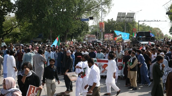 Yürüyüşe liderlik eden, Pakistanlı eski senatör Muştak Ahmet Han, yaptığı açıklamada, "ABD, (Filistinlilere) yapılan soykırımın finansörüdür." dedi.
