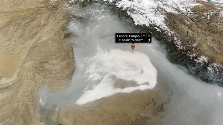 Pakistan nüfusunun yarısından fazlasına ev sahipliği yapan Pencap eyaletinin üstünü kaplayan hava kirliliği, NASA Worldview tarafından görüntülendi.