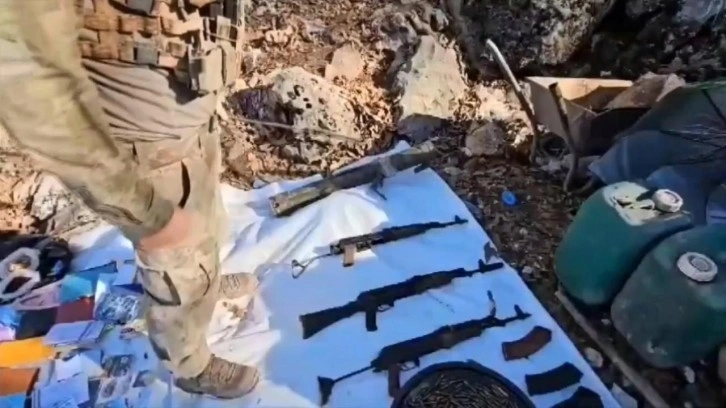 "Pençe-Kilit Operasyonu bölgesinde tespit edilen mağarada, termobarik lav silahı, 3 AK-47 piyade tüfeği ve 6 şarjörü, 553 AK-47 piyade tüfeği mühimmatı, 4 termal şemsiye, 4 savunma, 2 taarruz el bombası, EYP düzenekleri ve fünyeler, M-16 piyade tüfeği dipçiği, fotoğraf makinesi, 2 kindle, 3 radyo, telefon, gaz maskesi, alpha-fire düzenekleri, çeşitli ebatta aküler, kesintisiz güç kaynağı, 2 jeneratör, örgütsel dokümanlar, çok sayıda yaşam malzemesi ve tıbbi malzeme ele geçirildi."