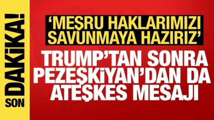 Trump'tan sonra, İran Cumhurbaşkanı Mesud Pezeşkiyan da ateşkes mesajı verdi. Pezeşkiyan, Tel Aviv'in ateşkese uyması durumunda Tahran'ın da uyacağını söyledi.