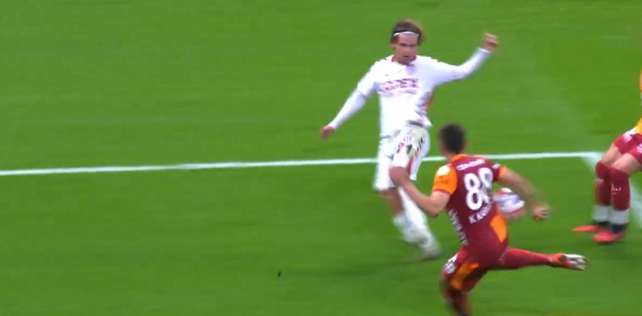 Karşılaşmanın 90+7. dakikasında tartışmalı bir pozisyon yaşandı. Galatasaray ceza sahasının sağında topla buluşan Samsunsporlu Holse içeri ortaladı. Top ceza sahasında bulunan Kazımcan Karataş'tan döndü.