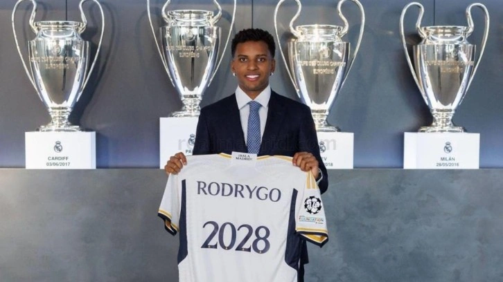 La Liga ekibi Real Madrid, Brezilyalı futbolcusu Rodrygo'nun sözleşmesini yeniledi. Eflatun-beyazlılar, 22 yaşındaki kanat oyuncusunun sözleşmesini 30 Haziran 2028 tarihine uzattı. İspanyol ekibinin resmi internet sitesinden yapılan açıklamada, 2019 yılında takıma katılan Brezilyalı futbolcunun, Real Madrid'in son sezonlarda kazandığı birçok şampiyonlukta belirleyici rol oynadığı aktarıldı.