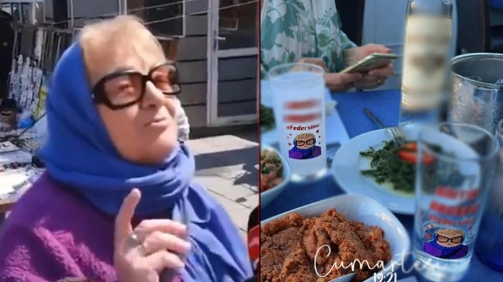 Kuzguncuk'taki restoranda, 2023'teki Cumhurbaşkanlığı seçim döneminde Medyali Tv adlı YouTube kanalının Sarıyer'deki bir sokak röportajında "Sonuna kadar Erdoğan" diyen AK Partili bir kadına "S.... O...." diyerek küfür eden yaşlı kadının görüntü ve sözlerinin yer aldığı çıkartmaların kullanıldığı görüldü.