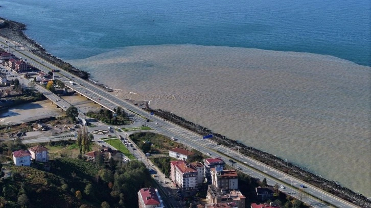 Bölgede heyelana neden olan yağış sonrası oluşan çamurlu su, denizin rengini değiştirdi. Denizin rengi bazı bölgelerde kahverengiye dönüştü.