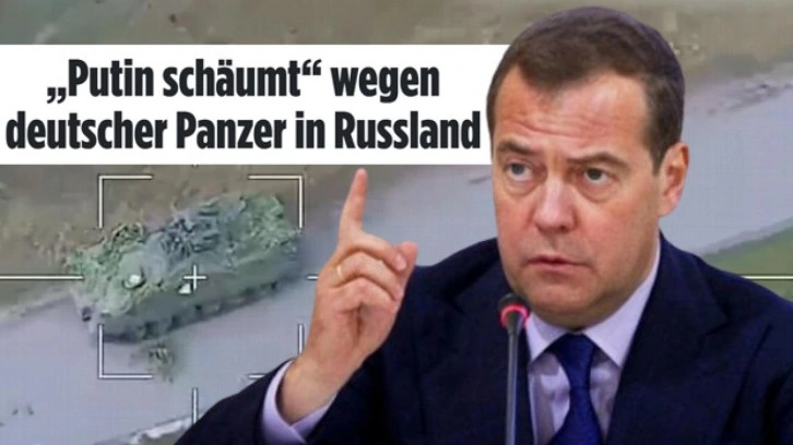 Rusya Güvenlik Konseyi Başkan Yardımcısı Dmitriy Medvedev, X'ten yaptığı paylaşımda, Bild gazetesinde yayımlanan, "rövanşist" sözüyle nitelendirdiği makaledeki "Alman tanklarının Rus topraklarına döndüğü" yorumuna karşılık, Berlin'de yer alan Federal Meclisin (Reichstag) önündeki meydana en iyi Rus tanklarını gönderme tehdidinde bulundu.