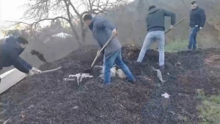 Bir diğer operasyon ise Cumayeri Üvezbeli köyünde yapıldı. İl Jandarma Komutanlığı KOM ve İstihbarat Şube Müdürlüklerinin istihbari çalışmaları neticesinde M.E. isimli şüphelinin evinde sahte alkol imal edip, sattığı tespit edildi. Dün saat 12.00 sıralarında ikamette yapılan aramada ise şüphelinin alkol bidonlarını sakladığı yer hayrete düşürdü. Ekipler tarafından yapılan incelemede, etil alkol bidonlarının ve bazı dolu içkilerin gübre içine saklandığı belirlendi. Gübreyi kürekle kazıyan ekipler şişe ve bidonları çıkardı. Evin odunluğun da boş içki şişeleri bulundu.