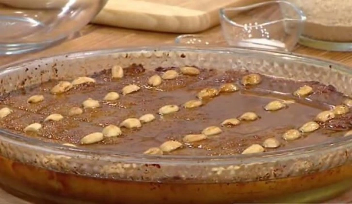 Şerbet hazırlandıktan sonra tatlının yapım aşamasına başlanabilir. 2 su bardağı yoğurt, irmik, 2-3 damla limon ve 2 kaşık un eklenerek karıştırılır. Kıvamını aldıktan sonra tereyağı ile yağlanan cam tepsinin üzerine bastırılır ve pekmez sürülür.