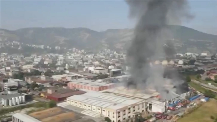 Kısa sürede büyüyeyerek yan taraftaki diğer bir plastik fabrikasına da sıçrayan yangına itfaiye ekiplerinin müdahalesi sürüyor.