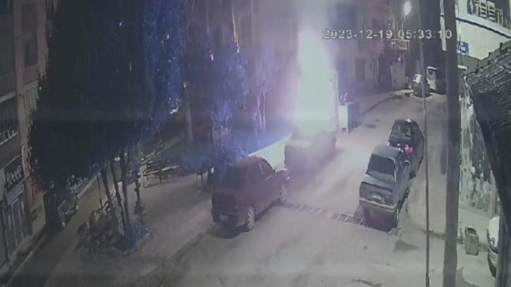 Otomobilin yandığı anlar ise güvenlik kamerasına yansıdı.
