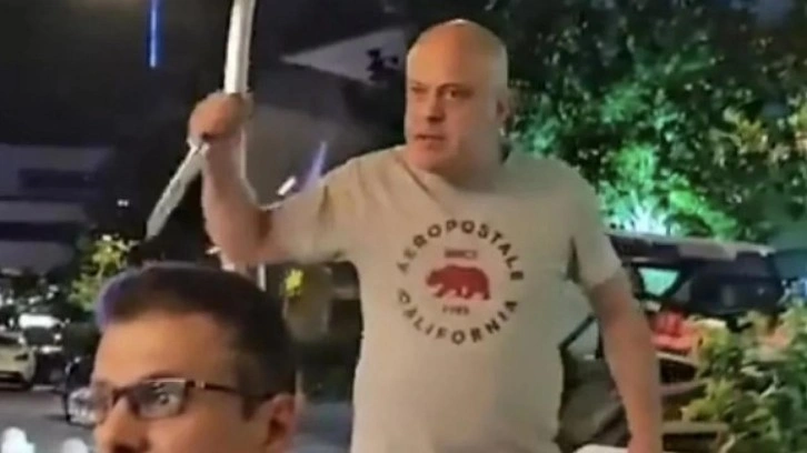 Turistlerin masasına doğru elindeki bıçağı sallayan şahıs, tehditleriyle birlikte sinkaflı küfürler savurmuş, görüntüler büyük tepki toplamıştı.