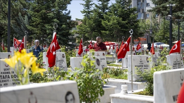Şehitliğe sabahın erken saatlerinden itibaren gelmeye başlayan aileler, kabir ziyaretinde bulundu.