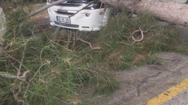 Aracın motor ve ön kaput kısmında hasar meydana geldi. Rüzgardan kaynaklandığı tahmin edilen kazan anında dolmuşta bulunan 1 kadın ve 1 çocuk yolcu, büyük bir korku yaşadı.