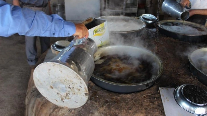 Pekmez yapımını anlatan üretici Mahmut Tanrıyatapan; ‘'Önce üzümleri ezerek suyunu çıkarıyoruz. Ondan sonra öndeki kazana alarak kaynatıyoruz. Üzerinde oluşan köpüğü alarak sürahilere bırakıyoruz. Sürahilerden süzerek buraya getirip tekrar yaklaşık bin 500 derecede kaynatıyoruz.'' dedi.
