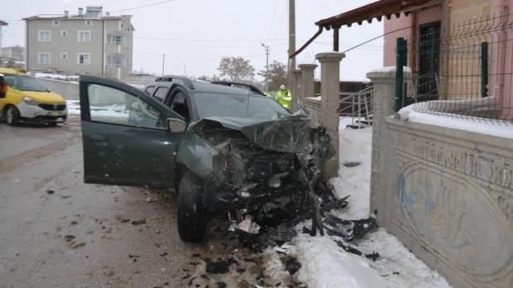 E.T. (20) idaresindeki 58 AEG 913 plakalı hafif ticari araç, Yıldırım Mahallesi Kale Yüzü Sokak'ta Yıldırım Camisi'nin duvarına çarptı.