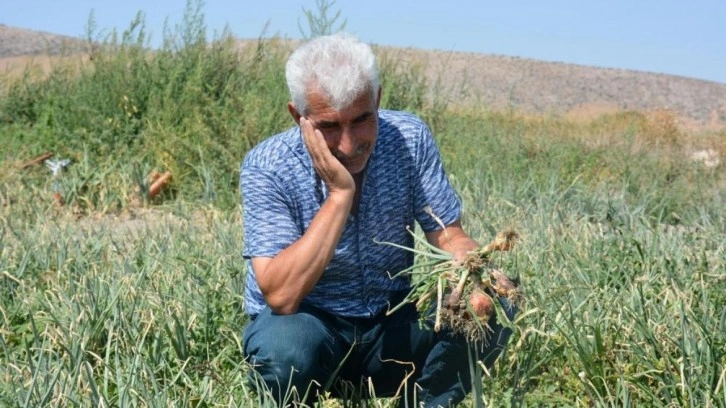 Yürekli, “Soğanın bir kellesi en az yarım kilo olması gerekirken şu an 100 ila 200 gram. Bu çiftçinin maliyetini de kurtarmaz. Çok büyük zarar eder. Rekolte düşük, gördüğünüz yerde soğanlar hep yanmış. Denizi de döksen soğanlar olmaz artık. Yüzde 70 ila 80 böyle” diye konuştu.