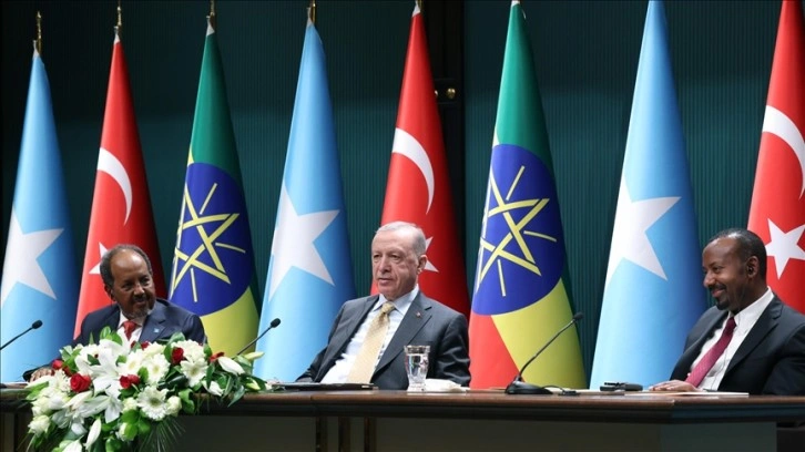 Cumhurbaşkanı RecepTayyip Erdoğan'ın ev sahipliğinde Ankara'da dün bir arayagelen Somali Cumhurbaşkanı Hasan Şeyh Mahmud ve Etiyopya Başbakanı Abiy Ahmed, iki ülkearasında yaklaşık bir yıldır süren krizin çözüme kavuşturulması noktasında mutabakata vardı.