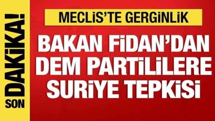 Bakan Fidan, konuşması sırasında sözünü kesmeye çalışan DEM Partililere "Sizin için Suriye Kürtlerden, Kürtler de PKK'dan ibaret ya. Suriye'nin tamamına bakın. Suriye'de sadece Kürtler yok. Suriye'de Dürziler var, Araplar var, Kürtler var, Sunniler var, Aleviler var. Birçok unsur var, sadece bir yer yok" sözleriyle tepki gösterdi.