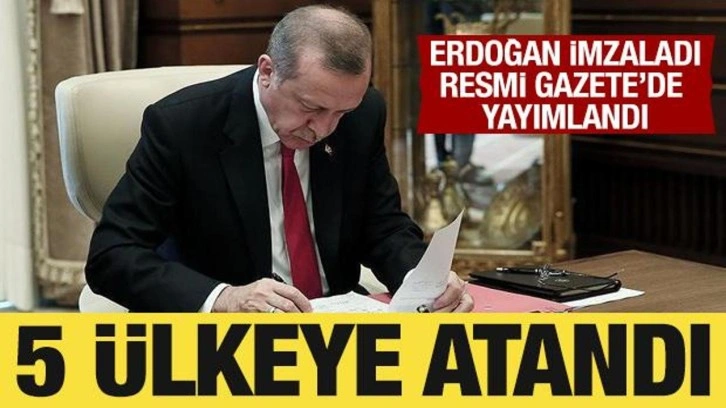 Cumhurbaşkanı Recep Tayyip Erdoğan'ın imzasıyla Resmi Gazete'de yayımlanan kararla 5 ülkeye büyükelçi atandı.