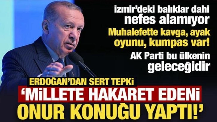 SON DAKİKA HABERİ: Cumhurbaşkanı ve AK Parti Genel Başkanı Erdoğan, partisinin genel merkezinde Genişletilmiş İl Başkanları Toplantısı'nda konuştu. CHP Genel Başkanı Özgür Özel'in İzmir'deki kongrede Dilruba Kayserilioğlu'nu onur konuğu olarak ağırlamasını sert sözlerle eleştiren Erdoğan, "Sadece AK Parti'ye, sadece Cumhur İttifakı'na oy verenleri değil, milletin çoğunluğunu rencide eden o fotoğraf Türk demokrasisine hiç yakışmadı. Siyaset kurumuna gölge düşürdü. Bu lekenin süratle temizlenmesi gerektiği kanaatindeyiz. Özgür Özel'in millete özür borcu olduğu kanaatindeyiz." dedi.