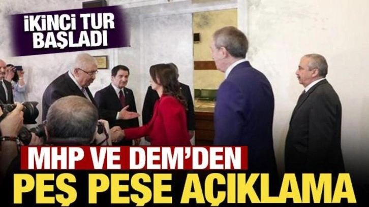 Görüşme sonrası konuşan DEM Parti Eş Başkanı Hatimoğulları, "Detaylı açıklamamızı bugün gün içerisinde görüşmelerimizi tamamladığımızda yapacağız. Sayın Bahçeli'ye geçmiş olsun diyoruz" ifadelerini kullandı.