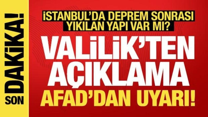 İstanbul Valiliği'nden yapılan son açıklamada, "An itibarıyla herhangi bir yıkım ihbarı alınmamış olup ilgili birimlerimizin alan tarama çalışmaları devam etmektedir" denildi.