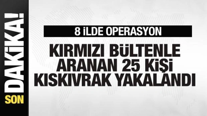 İçişleri Bakanı Ali Yerlikaya 8 ilde düzenlenen “Kuyu-21” operasyonları ile 18 ülke tarafından haklarında İnterpol’ün Kırmızı Bülten ve Difüzyon Mesajı (Acil Yakalama Mesajı) ile arama kaydı bulunan 25 şüphelinin yakalandığını açıkladı.
