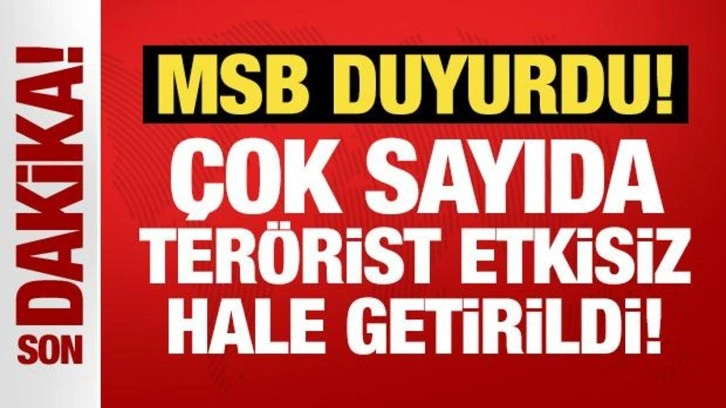 SON DAKİKA HABERİ: Milli Savunma Bakanlığı (MSB), "Aziz vatanımız için terör ve teröristle mücadeleye tüm gücümüzle devam ediyoruz!" diyerek, Irak ve Suriye'nin kuzeyinde toplam 13 PKK'lı teröristin etkisiz hale getirildiğini açıkladı.