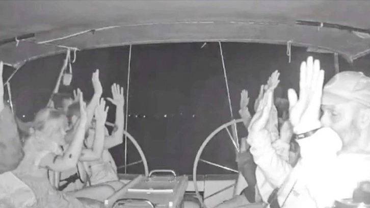 Greta Thunberg ve beraberindeki mürettebat Küresel Sumud Filosu'nda.