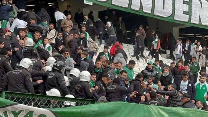 Bu sırada yeşil-beyazlı taraftar da sahaya inmek isteyince polis ile Konyaspor taraftarı arasında gerginlik yaşandı.