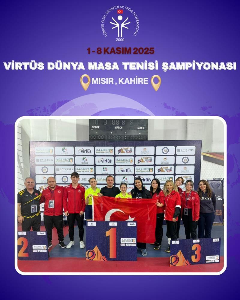 Mısır’ın Kahire kentinde düzenlenen VIRTUS Dünya Masa Tenisi Şampiyonası’nda, milli sporcular Ebru Acer ve Sümeyra Türk’ten oluşan Kadın Para Masa Tenisi Milli Takımı, finalde Rusya’dan Maria Galkina ve Provokefeva Elena’yı 3-1 mağlup ederek dünya şampiyonu oldu.