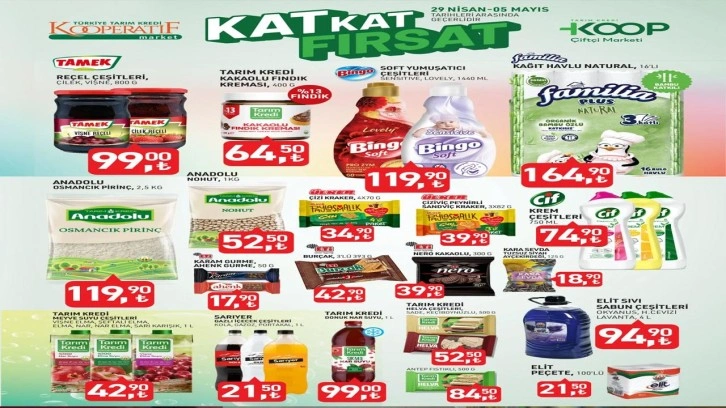 Her hafta güncellenen indirim afişleriyle temel ihtiyaçlara yönelik uygun fiyatlı ürünler sunan Tarım Kredi Marketleri, 29 Nisan – 5 Mayıs tarihleri arasında geçerli olacak kampanyayı duyurdu.
