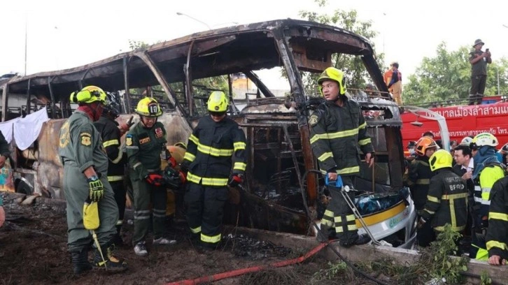 Tayland Ulaştırma Bakanı Suriya Jungrungruengki, yaptığı açıklamada, okul gezisi için Uthai Thani bölgesinden hareket eden ve 44 yolcuyu taşıyan otobüsün yolda alev aldığını bildirdi.