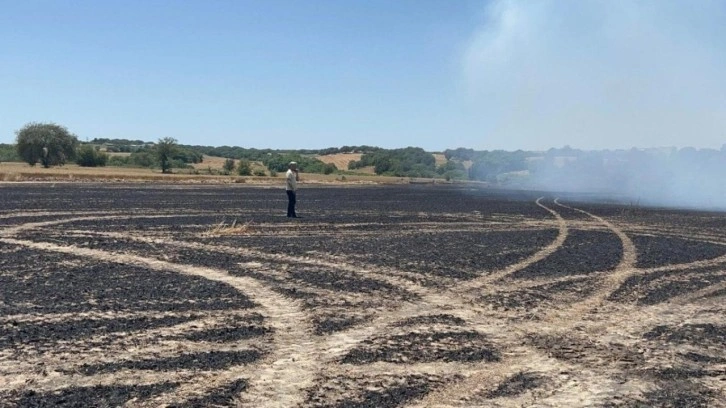 Yangında 50 dekar ekili buğday ile çiftlikteki samanlar yandı. Jandarma ekipleri yangının çıkış nedenini belirlemek için çalışma başlattı.
