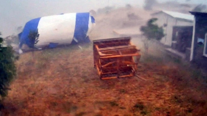 Kartal tepe mevkiinde bulunan özel bir kamp alanında çıkan hortum 3 kamelya, 24 metrekarelik çadır ve 6 adet güneş paneli ile elektrik direkleri hasar gördü.